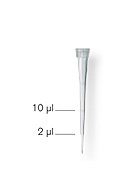nano-cap™ 吸头专为超微量量程移液器设计,是分子生物学实验,如PCR*的理想之选。吸头长37 mm,吸头尖有毛细管设计,即使移取0.1μl体积,也可由肉眼观察到。吸头尖的毛细管设计使其易于为各类电泳凝胶的泳道上样。适用于最大量程20 μl的移液器。预装吸头无色透明,放置于一个灰色的吸头托架上。